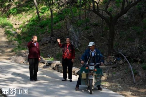 董乃軍負責200多個投遞點,他每天需要帶著近百十斤重的郵包,翻越十幾座山頭為村民投遞,38年的時間已經丈量了一百多萬公里的山路,騎壞了十幾輛自行車,但從沒有因為天氣原因或自己的疏忽懈怠而耽誤任何郵件的投遞,實現了38年無差錯。圖為董乃軍從村里離開時,老人們和他揮手告別。