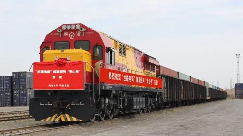 11月26日,滿載著國際郵件、跨境電商包裹的“絲路電商”郵政班列“天山號”從新疆烏魯木齊西貨場首發(fā)開行,前往哈薩克斯坦阿拉木圖。