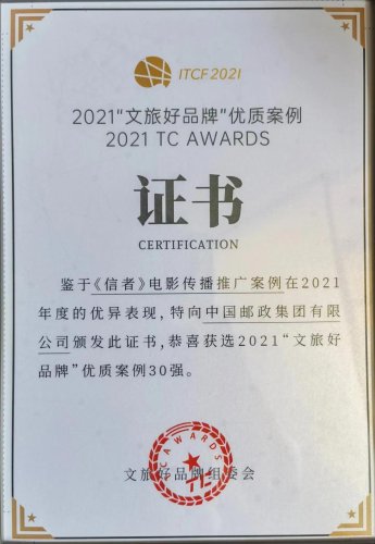 守正創(chuàng)新、融通中外,傳播文旅好品牌。12月11日,2021第六屆博鰲旅游傳播論壇在海南博鰲舉辦,論壇現(xiàn)場發(fā)布了2021“文旅好品牌”優(yōu)質(zhì)案例30強(qiáng),由中國郵政集團(tuán)有限公司報送的《信者》電影傳播推廣案例榮獲該獎項。