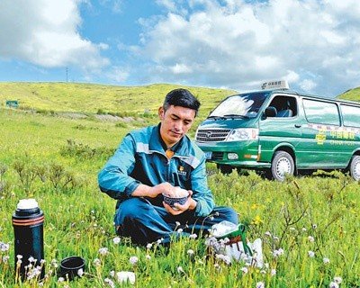 現(xiàn)在,叫他“草原信使”的少了,叫他“快遞小哥”的多了。哈弄奪機挺喜歡這個新稱呼,覺得自己年輕了不少。但跟風風火火的“快遞小哥”不同,草原上開的是“慢車”。若爾蓋的旅游資源豐富,這幾年不少外地游客慕名而來,又不熟悉路況,被困是常事,幫助游客也成了哈弄奪機的另一項工作。