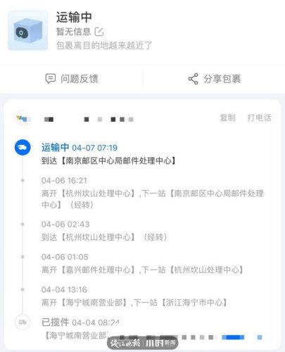 ●4月7日7時(shí) 已抵達(dá)南京郵件處理中心