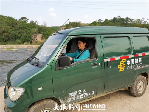 七點(diǎn)半,她準(zhǔn)時(shí)來(lái)到縣郵政局投遞室,開(kāi)始了一天的忙碌工作。有條不紊地整理好信件、報(bào)紙和包裹之后,再把它們一一搬上那輛綠色車(chē)身,并貼有“中國(guó)郵政”字樣的普通面包車(chē),隨即啟動(dòng)車(chē)子,向茫茫山區(qū)出發(fā)。
