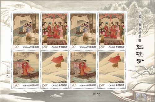 4月23日,中國郵政發(fā)行《中國古典文學(xué)名著——〈紅樓夢〉(五)》特種郵票一套4枚、小型張1枚。郵票圖案名稱分別為:黛玉焚稿、金玉聯(lián)姻、探春遠(yuǎn)嫁、寶玉卻塵,小型張圖案名稱為:寒塘鶴影。全套郵票面值11.10元。