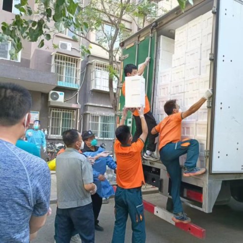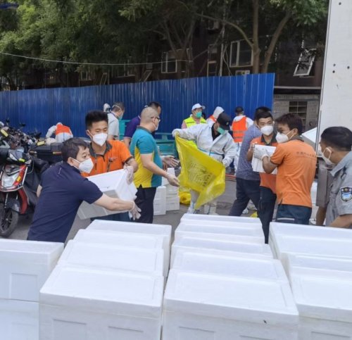 5月29日,3900份蔬菜套餐和6400斤延慶愛(ài)心圓生菜分4車(chē)順利送達(dá)封控區(qū)南庭新苑北區(qū)內(nèi)。