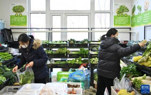 1月11日,居民在天津市西青區(qū)中北鎮(zhèn)一小區(qū)的商店內選購蔬菜。新華社記者 李然 攝