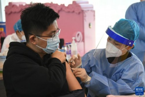 2021年12月7日,北京市海淀區(qū)上地街道組織醫(yī)護人員來到海國瑞業(yè)科技園,為園區(qū)內的企業(yè)員工進行新冠疫苗加強針接種。新華社記者 任超 攝