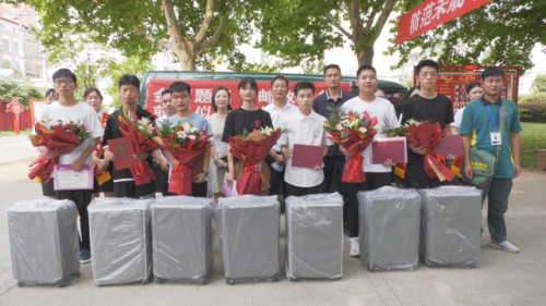 一大早,徐會(huì)超就懷揣著激動(dòng)的心情趕到了郵政公司。消殺郵件后,徐會(huì)超與工作人員帶著鮮花與祝福和錄取通知書,來到了上蔡縣第一高級(jí)中學(xué)。在經(jīng)過雙證核實(shí)、簽字、拍照等一系列簽收手續(xù)后,徐會(huì)超鄭重地把清華大學(xué)、北京大學(xué)錄取通知書送到7位學(xué)子手中,工作人員為他們送上上蔡縣郵政分公司特地準(zhǔn)備的拉桿箱和鮮花。上蔡郵政分公司總經(jīng)理翁斌、副總經(jīng)理原芳為考生們送去郵政了真摯的祝福。