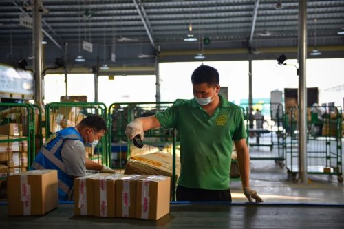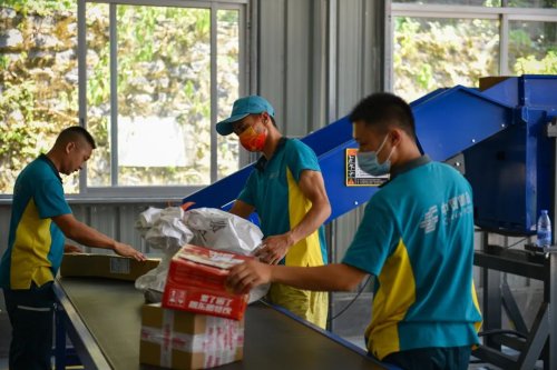 在上期的采訪中,采訪組了解到花田村的“新鮮”事兒大多發(fā)生在今年。是什么力量讓郵政在短短半年內(nèi)就實(shí)現(xiàn)了“五進(jìn)一出”的目標(biāo),為當(dāng)?shù)卮迕駧?lái)這么多的變化呢?帶著疑問(wèn),采訪組來(lái)到英德市寄遞共配中心,實(shí)地了解三級(jí)物流體系建設(shè)情況。