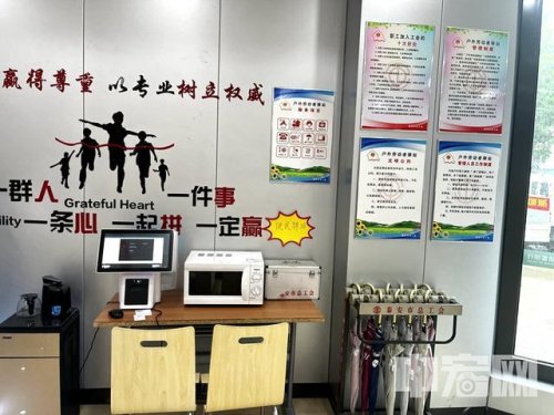 走進(jìn)郵政支局“戶外勞動者驛站”,盡管地方不大,但桌椅、冰箱、空調(diào)、飲水機(jī)、微波爐、打印機(jī)、充電器、雨傘、針線包、應(yīng)急藥箱......各種設(shè)施物品一應(yīng)俱全。高大姐說,“驛站”里冬天有熱水,夏天有礦泉水,可以熱飯,可以充電,如果有時(shí)間,還可以看看報(bào)刊雜志,幾乎成了她和工友們的“第二個(gè)家”?!坝绕涫乾F(xiàn)在這么熱的天氣,郵政支局有時(shí)還會給我們準(zhǔn)備冰棍、綠豆湯、西瓜等,消暑祛暑,很是貼心?!?/p>