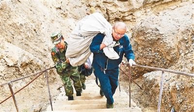 上橋,有兩條路線:一是開車走盤山“搓板路”,路遠難行還危險;二是徒步爬一條直通橋上的水泥臺階,150級,坡度近70度,被執(zhí)勤部隊官兵形容為“天梯”。高海拔下,二十來歲的年輕戰(zhàn)士,走“天梯”都會頭暈?zāi)垦?,?976年生人的葛軍,為節(jié)省時間,每次都選擇扛著郵包往上爬。