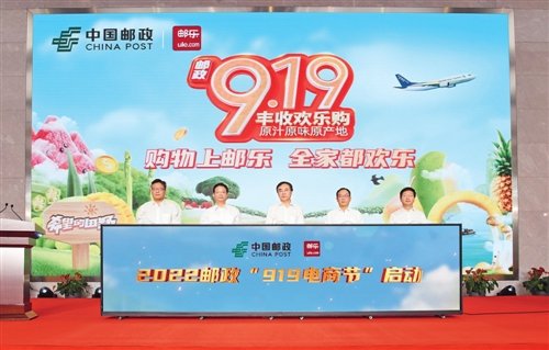 郵政919,豐收歡樂購。9月1日,第六屆中國郵政“919電商節(jié)”正式啟動。作為農(nóng)業(yè)農(nóng)村部主辦的第五屆“中國農(nóng)民豐收節(jié)金秋消費季”系列活動之一,今年的“919電商節(jié)”,中國郵政進一步強化“郵政919,豐收歡樂購”主題,推出鄉(xiāng)村振興“萬單計劃”、“百大品牌”特惠活動、社區(qū)團購“萬團齊發(fā)”等“十大活動”,助力農(nóng)民創(chuàng)利增收、農(nóng)村消費提質(zhì)、農(nóng)業(yè)興旺發(fā)達,全面構建郵政農(nóng)村電商新生態(tài),為鄉(xiāng)村振興注入新活力。國家郵政局副局長戴應軍,農(nóng)業(yè)農(nóng)村部農(nóng)村合作經(jīng)濟指導司一級巡視員趙鐵橋,國家鄉(xiāng)村振興局社會幫扶司司長李富君,國家郵政局普遍服務司司長馬旭林,商務部流通發(fā)展司副司長張祥;中國郵政集團有限公司黨組書記、董事長劉愛力,副總經(jīng)理康寧、溫少祺,總會計師郭成林等出席。