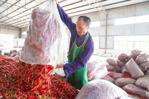 公司的產(chǎn)品主要以辣椒調(diào)味品為主,如干辣椒、紅油辣椒、火鍋底料。譚建蘭介紹說(shuō),通過(guò)“公司+基地+合作社+農(nóng)戶”的模式,三紅辣椒合作社共有1.1萬(wàn)畝種植基地,帶動(dòng)了6400戶社員增收致富?!拔覀兦捌谠诨赜绫WC品種品質(zhì),中期安排科技特派員進(jìn)行技術(shù)指導(dǎo),后期兜底收購(gòu),讓村民生產(chǎn)無(wú)憂、銷售不愁?!?/p>