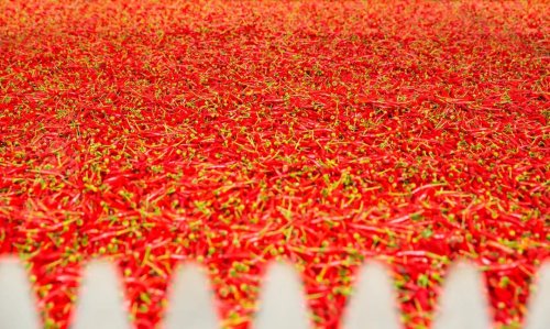 循著這股辣味,重慶采訪組來(lái)到重慶譚妹子金彰土家香菜加工有限公司。一進(jìn)門就聞到了空氣中彌漫著的辣椒香味,廠房里的烘干機(jī)正開足馬力運(yùn)轉(zhuǎn),庫(kù)房里加工好的干辣椒正等待著郵車的到來(lái)。
