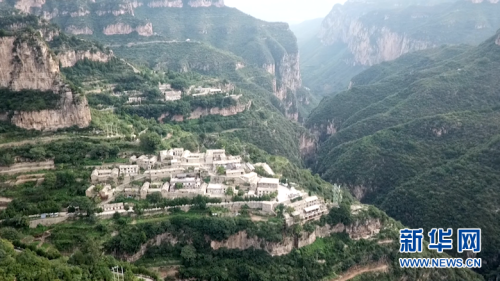 航拍通往岳家寨村的太行天路