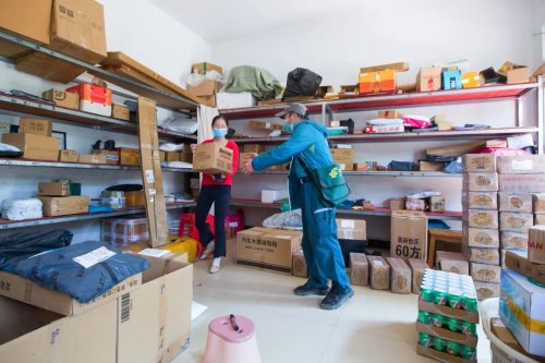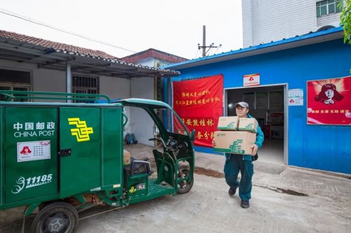 投遞完農(nóng)莊村民網(wǎng)購的包裹