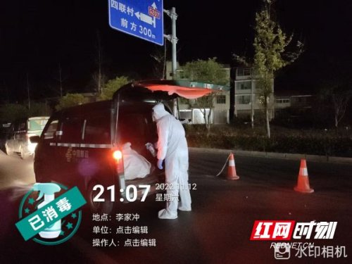 21點10分,郵車到達(dá)邵陽縣交接防疫卡口,邵陽縣郵政分公司陳偉、劉澤湘兩位同志穿上密封的防護(hù)服早已等候多時,他們將郵袋做了全面消殺處理,交接完成后駕駛郵車向目的地駛?cè)ァ?1點50分,郵件到達(dá)邵陽縣李家沖,兩人與其家人完成面交。