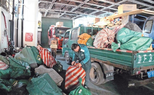 葛喜將島外寄來的郵件卸船裝車后,再運到郵政支局。