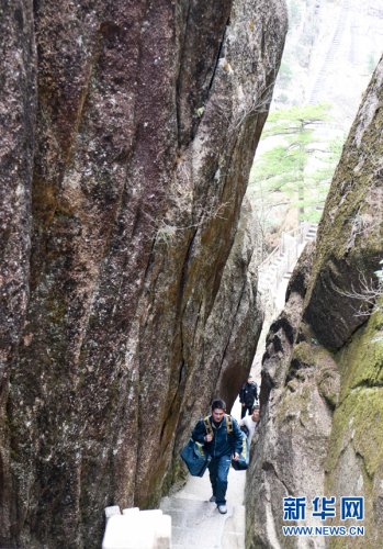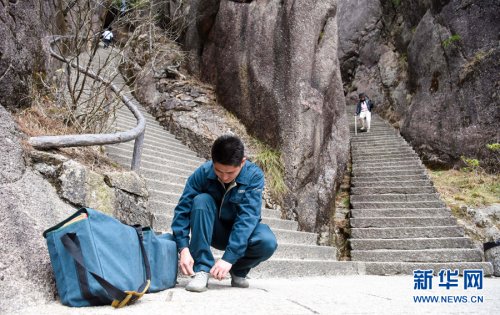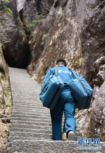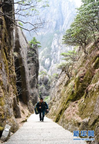 黃山素有“三十六大峰,三十六小峰”之稱,主峰蓮花峰海拔高達(dá)1864.8米。風(fēng)景區(qū)內(nèi),山路崎嶇、不通車馬,山上工作人員和游客所需的報(bào)刊、信件等,只能靠謝菲俊背著郵包送上山。
