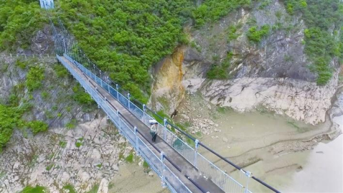 羅運良背負郵件,步行在建陽坪村利方巖橋上。
