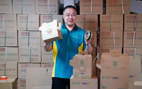 刁海濤帶著記者來(lái)到中國(guó)郵政集團(tuán)有限公司北京市分公司一處擺滿貨架和快遞箱的生產(chǎn)現(xiàn)場(chǎng)?!?、2、3、4、5……”不到一分鐘的工夫,一個(gè)無(wú)需膠帶、僅靠拼插即可成型的快遞紙箱就在刁海濤手中組裝完畢。“咚!”他向剛剛拼插好的快遞紙箱重重?fù)舸蛄艘蝗?,紙箱表面只有輕微的凹陷,并沒(méi)有發(fā)生任何損壞。刁海濤解釋說(shuō),這款專利包裝箱借鑒了中國(guó)傳統(tǒng)的榫卯技術(shù),單純依靠折疊、插接就能快速組裝完成,完全不需要使用膠帶進(jìn)行封裝。別看比普通紙箱的重量輕,但這款專利產(chǎn)品的邊壓強(qiáng)度、耐戳穿力、抗跌落能力等指標(biāo),都遠(yuǎn)比普通紙箱要強(qiáng)得多。