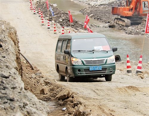 滿載救災(zāi)物資的郵車正在通過(guò)河邊臨時(shí)夯起的土路,馬不停蹄地趕往交通不便的北京市房山區(qū)蒲洼鄉(xiāng)?!醣緢?bào)記者 張晨昱 攝影報(bào)道