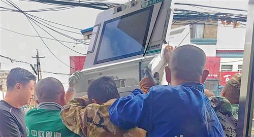 吉林省扶余市郵政分公司蔡家溝支局員工緊急轉(zhuǎn)移自助機(jī)具到安全地方。□吉林省郵政分公司提供
