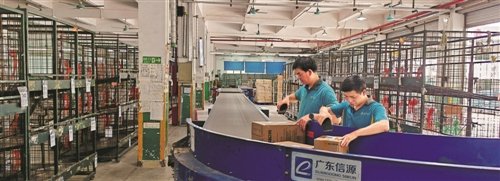 廣州市番禺區(qū)華南郵件直投中心分揀現(xiàn)場(chǎng)?!觖溫怪?攝