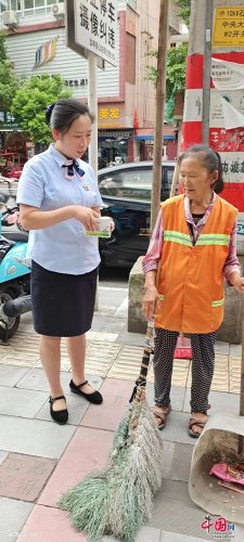 經(jīng)過(guò)休息,環(huán)衛(wèi)阿姨身體狀態(tài)恢復(fù)如常準(zhǔn)備繼續(xù)工作,該行工作人員還為她送上藿香正氣液備用?!澳銈兎?wù)真的太好了,謝謝你們對(duì)我們戶外勞動(dòng)者的關(guān)心、關(guān)愛(ài)和幫助,還學(xué)到了防詐騙知識(shí),感謝你們?!杯h(huán)衛(wèi)阿姨感動(dòng)地說(shuō)。