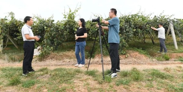 采訪組在農戶幫助下體驗采摘獼猴桃