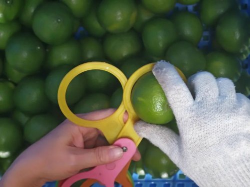偌大的處理中心里,水果處理插上了智能化“翅膀”。一筐筐水果被送上智能分揀機(jī)器,按口徑大小從不同的格口被分揀出來(lái)后,再進(jìn)行打包裝箱。
