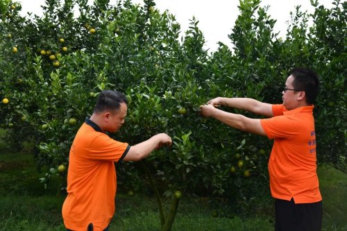 穿過(guò)荔枝種植區(qū),采訪組來(lái)到了靈山縣超達(dá)柑橘種植專業(yè)合作社,果園里一顆顆黃澄澄的沃柑、翠綠的皇帝柑掛滿枝頭,長(zhǎng)勢(shì)喜人。
