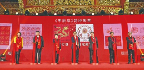 天龍行健,辰龍獻瑞。1月5日,《甲辰年》特種郵票首發(fā)儀式在中國工藝美術(shù)館(中國非物質(zhì)文化遺產(chǎn)館)隆重舉行。