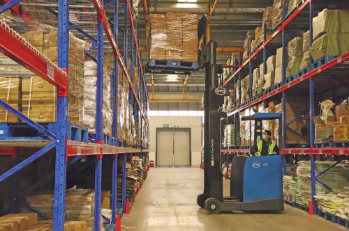 京山倉內(nèi)配備的叉車提高了進出貨作業(yè)效率。