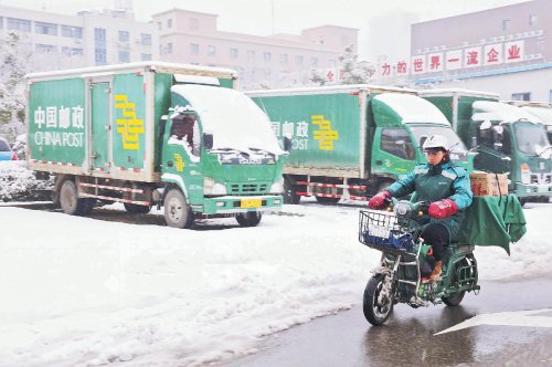 湖北省武漢市郵政分公司在做好人員、車輛安全防范的情況下,攬投部全部正常對外服務;投遞員迎雪而上,提前到崗,做好車輛檢查、郵件分揀等班前準備工作。同時,合理規(guī)劃投遞路線,抓緊時間出班,及時將郵件安全、高效送到市民手中。