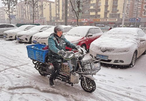 2月4日,江蘇省淮安市迎來強(qiáng)降雪?;窗侧]政分公司投遞人員堅(jiān)守崗位,在大雪中小心騎行,將一份份報(bào)紙、一件件包裹準(zhǔn)時(shí)送到客戶手中?! 蹶惡啤z影報(bào)道