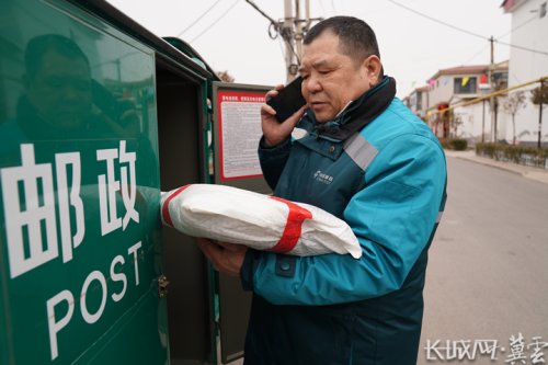 全國人大代表、中國郵政集團有限公司邢臺市分公司基層投遞員郭紅崗電話通知村民取快遞。長城網(wǎng)·冀云客戶端記者 劉俐驗 攝