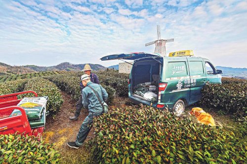 春節(jié)前后的雨雪低溫天氣,造成湖北省崇陽縣茶樹大面積凍傷。近期,茶農(nóng)開始修剪茶樹并追肥,恢復茶葉長勢。崇陽縣郵政分公司安排專車專人,第一時間將化肥送達茶園?!踔袊]政報通訊員 宋紅光 記者 周唯 攝影報道