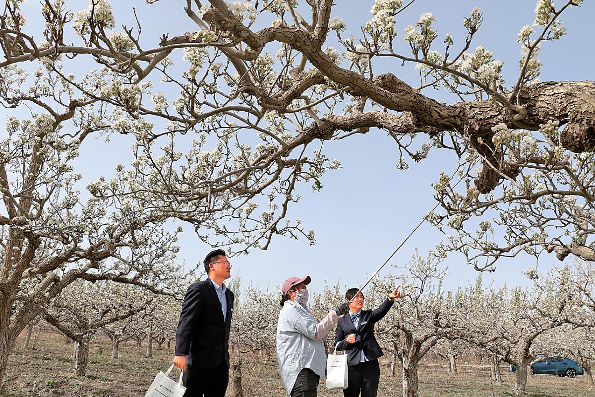 近日,在位于新疆維吾爾自治區(qū)巴音郭楞蒙古自治州庫爾勒市阿瓦提鄉(xiāng)的“香梨小鎮(zhèn)”,幾十萬畝香梨樹盛開的潔白如雪的花朵在春風(fēng)中搖曳生姿。