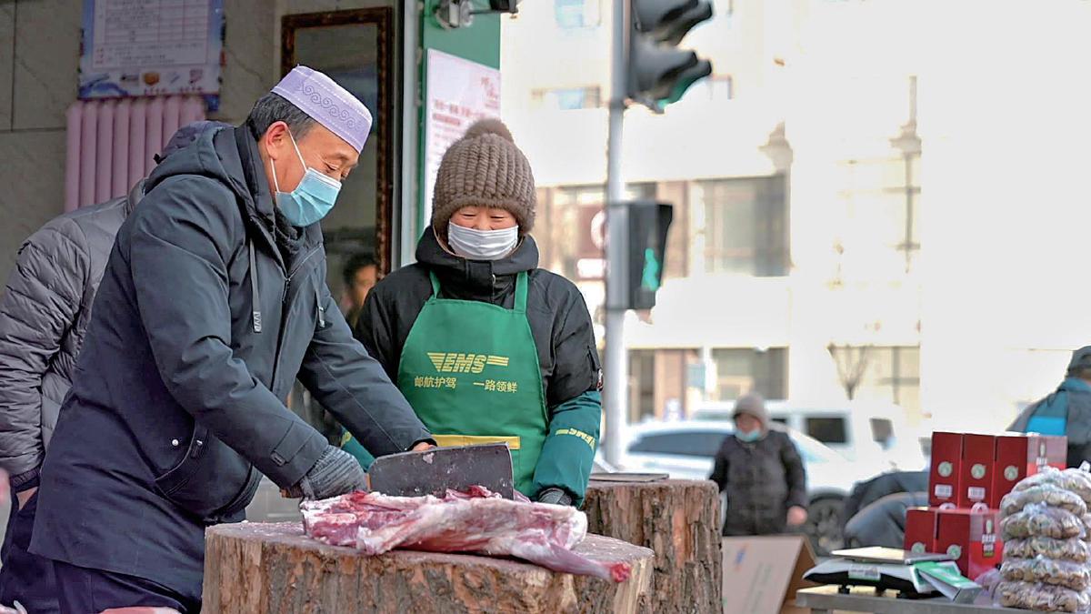 銷售旺季,綠色郵車貼著“找郵政,吃正宗鹽池灘羊”的海報(bào)穿梭在城市、鄉(xiāng)鎮(zhèn)的大街小巷。郵政攬投員隨時(shí)在羊肉店門口開啟一場速度的比拼,裝肉、打包、貼單、裝車……當(dāng)天收寄,當(dāng)天發(fā)出。店內(nèi)老板穿著郵政贈(zèng)送的帶有專屬標(biāo)識(shí)的圍裙,雙手不停,剁完一只又一只,與郵政攬投員“無縫銜接”,“妥妥拿捏”灘羊的新鮮。