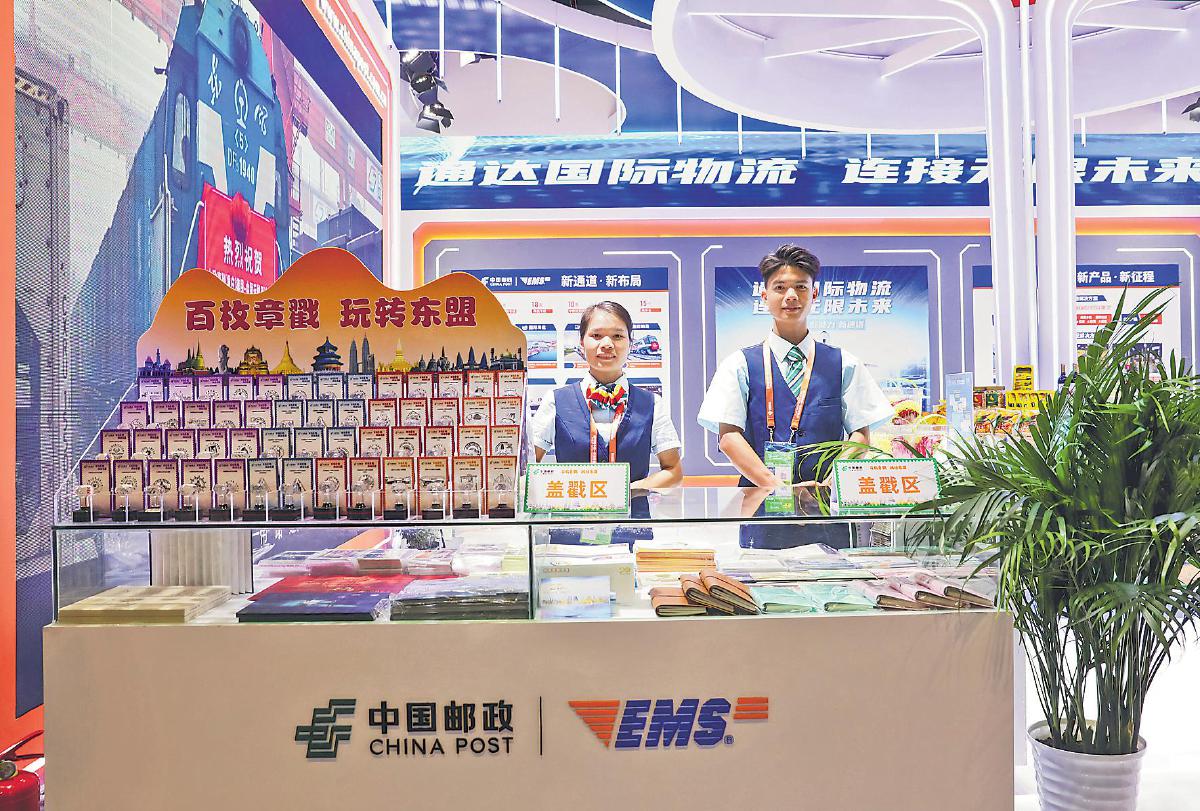 廣西郵政在第20屆中國—東盟博覽會上設置“百枚郵戳 玩轉東博”活動專區(qū),供觀眾打卡、集戳?! 跄獦渖z