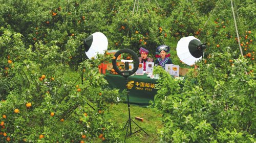 南寧郵政主播在武鳴沃柑基地直播帶貨?!踔袊]政報(bào)記者 賈紅偉 攝
