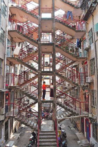 南寧市郵政分公司投遞員在鴛鴦樓投送郵件。□中國郵政報(bào)記者 賈紅偉 攝