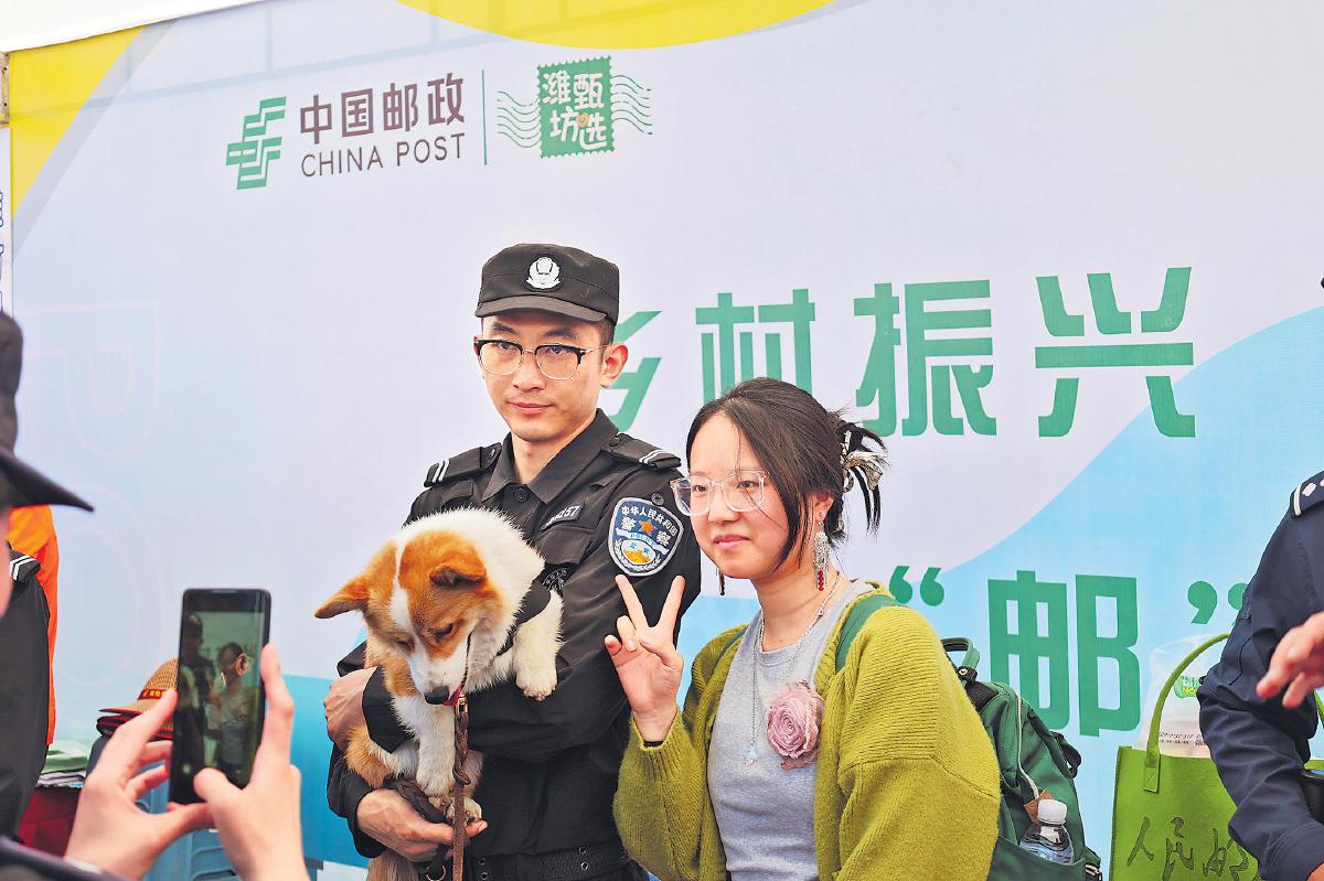 4月20日,全網(wǎng)流量過億的柯基警犬福仔,在執(zhí)行巡邏任務(wù)的間隙來到濰坊風(fēng)箏郵局參加“巡回粉絲見面會(huì)”,與粉絲親密互動(dòng)。