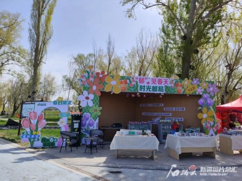 4月23日,在五家渠市第十九屆郁金香文化旅游節(jié)上,市民李莉發(fā)現(xiàn)一個(gè)名為“‘郁’見春天”的時(shí)光郵局,在這里可以打卡拍照、選購郁金香主題的明信片、蓋郵戳。