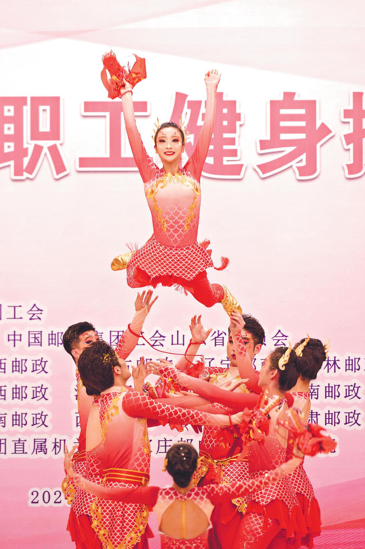 這次大賽舞出了風(fēng)采。無論是青年組還是中年組,參賽隊(duì)員們都活力滿滿、熱情四溢,集中展示了中國(guó)郵政全體職工的健身成果,彰顯著運(yùn)動(dòng)帶來的健康與快樂。有隊(duì)員即使賽前訓(xùn)練受傷,也堅(jiān)持上場(chǎng)比賽,用行動(dòng)將郵政人勇敢拼搏的精神、昂揚(yáng)向上的風(fēng)貌展現(xiàn)得淋漓盡致。