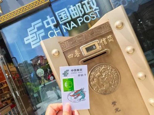 夜色里的大唐不夜城街區(qū),2021年建在這里的大唐郵驛主題郵局,因為銅質打造四面投信的“銅匭·四獸”郵筒,顯得格外扎眼。這里作為全國首家以唐文化為主題的郵局,一款款獨具巧思的郵政產品——大唐特色明信片、手辦、各式章戳,2024年全國首枚生肖龍?zhí)咨幕沾恋?,幫市民游客直觀了解郵驛文化,吸引大量游客前來打卡,是目前西安日接待游客量最大的主題郵局。
