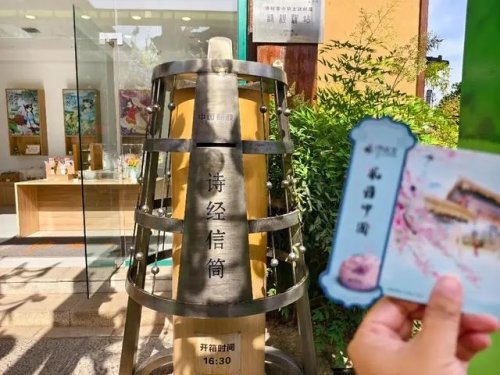 詩經里小鎮(zhèn)“孫陽”“望舒”的經典IP形象,是詩經驛站主題郵局的醒目地標。5月15日上午,記者打卡詩經驛站,遇到許多游客在這里郵遞信件、明信片,選購各款詩經紀念封、主題郵票,通過詩經郵筒遙寄祝福,從詩經里漫郵世界 。
