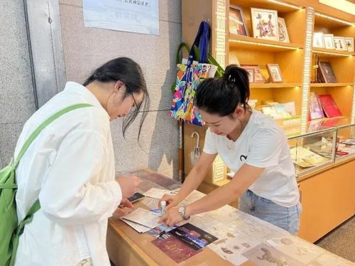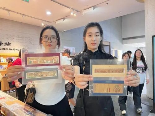 在陜歷博絲路驛站主題郵局,兩名從武漢來的“00后”大學生徐睿和李芷涵,也發(fā)現了驚喜。徐睿說:“我們是學藝術設計的,剛剛在樓上參觀時,看到了難得一見的半壁仕女圖,沒想到在樓下就發(fā)現了仕女圖的特種郵票。特別開心!”