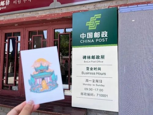 碑林郵驛主題郵局,藏身西安碑林博物館內,幾乎是西安面積最小的主題郵局,它有西安首個主題特色郵筒,碑石的形狀刻有象征吉祥的云紋。自2016年營業(yè)以來,承擔信件、包裹、匯兌、印刷品等郵政普遍服務業(yè)務的同時,集章拍照、文創(chuàng)選購……小小主題郵局“五臟俱全”。也是西安第一個主題郵局。