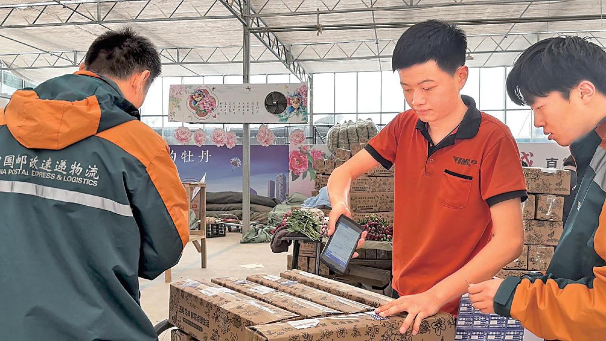 “真是太感謝咱菏澤郵政了!他們來我們種植基地開展溯源直播,不到10分鐘就售出了上百單?!焙蕽墒心档^(qū)皇鎮(zhèn)國峰牡丹種植基地負責人王兆波高興地說。他表示,線上銷售要比線下銷售環(huán)節(jié)少、速度快。收到訂單后,他們當天就要采切、出庫芍藥,郵政人員會上門攬收、寄遞,同城的客戶當天就能收到鮮花?!班]政的高效服務,不僅實現(xiàn)了更快的銷售速度,還幫我們節(jié)省了冷庫保存的費用??蛻糍I得實惠、體驗滿意,我們從中也增加了收益。”王兆波說。